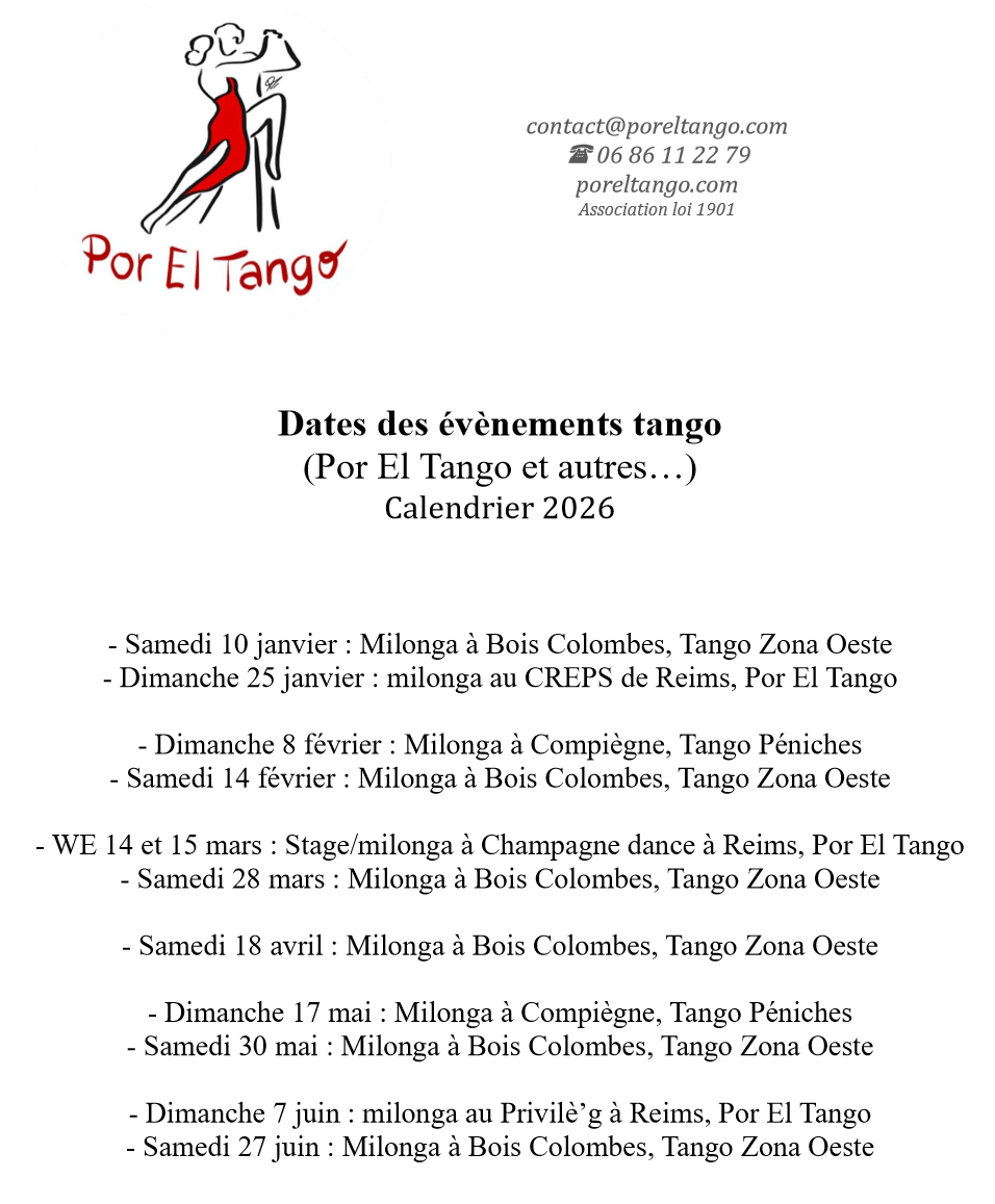 Comprend des événement organisés par Por El Tango et/ou d'autres associations.