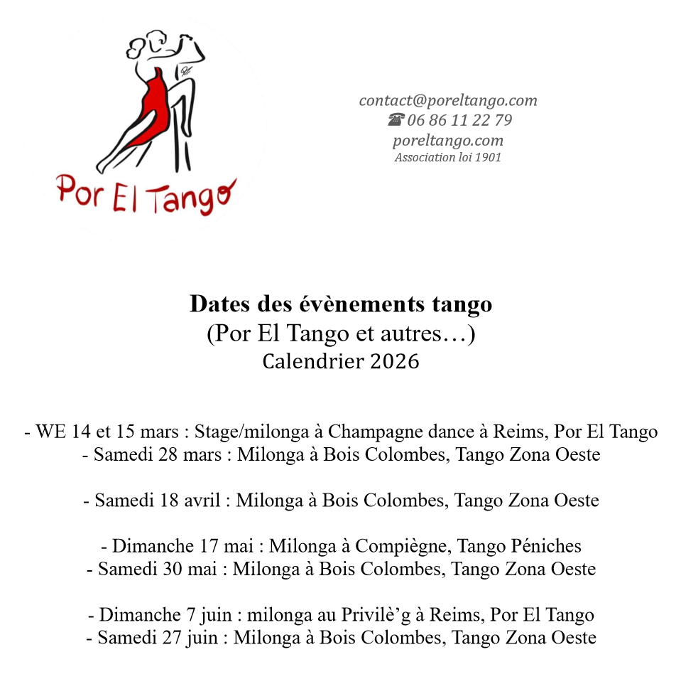 Agenda des événements tango à Reims et ses alentours.